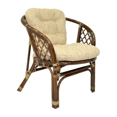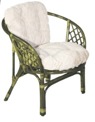 Удобное кресло из натурального ротанга с мягкой подушкой.