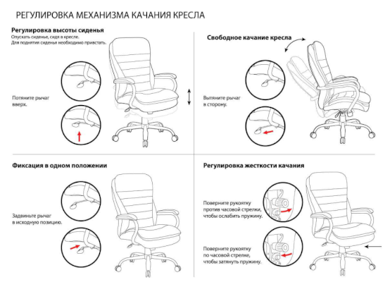 Тип механизма кресла: "топ-ган" качание с регулировкой под вес и фиксацией в 1 положении