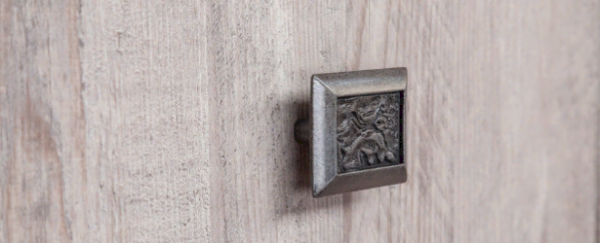 Шкаф имеет два вертикальных отделения за распашными дверями и отделение с двумя выдвижными ящиками