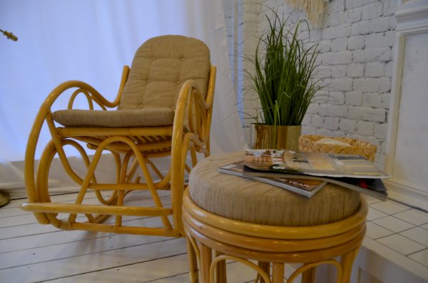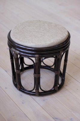 Табурет из ротанга с мягким сиденьем.