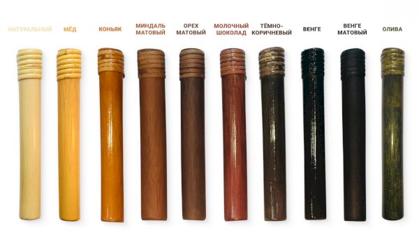 Цвета: натуральный, мед, коньяк, миндаль матовый, орех матовый, темно-коричневый, венге, венге матовый, олива.
