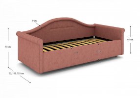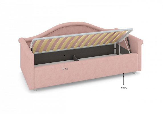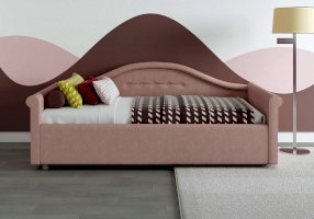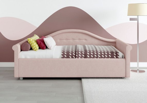 Кровать для девочки с изысканным изгибом спинки и округлыми формами подарят вашему ребенку волшебные мгновения сна. Разнообразие вариантов обивки сделает кровать неповторимой. Модель изготовлена из ДСП. В комплект кровати для девочки входит кроватное основание без опор. Каркас основания выполнен из металла, ламели - из берёзы.