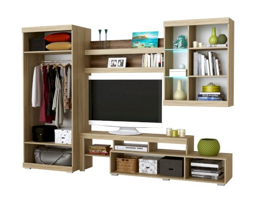 В гостиной Соната применяются современные европейские декоры: корпус выполнен из ЛДСП Дуб сонома, фасад из ЛДСП Белый глянец. Декоры отличаются выраженной тёплой древесной текстурой, а фасадная часть подчёркнута горизонтальными линиями текстуры и стильными планками МДФ, представляющими собой элементы корпуса и фасада.