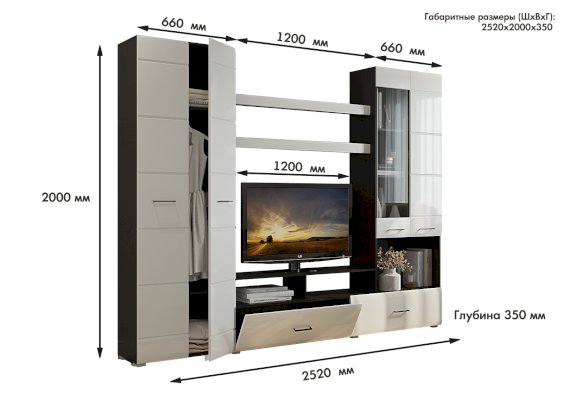 Длина ниши под телевизор, см | 1200 |