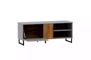 Тумба оснащена открытыми нишами и полкой, в которых можно удобно разместить видео- и аудиоаппаратуру или предметы интерьера.