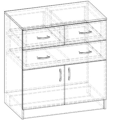 • Корпус, полки и фасады изготовлены из ЛДСП 16 мм с кромкой ПВХ 0,4 мм.