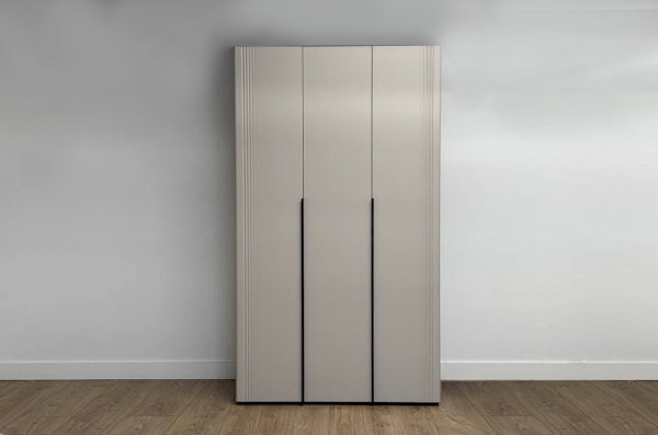 Особое внимание стоит уделить фрезеровке фасадов, которая придаёт шкафу изысканный и неповторимый вид. Длинные пластиковые ручки гармонично дополняют общий стиль шкафа.