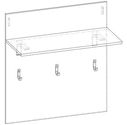 Стеновая панель с крючками и полкой 800