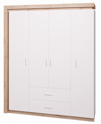 Шкаф для одежды с ящиками 4-х дверный без зеркал №16 Дуб сакраменто/Белый снег глянец