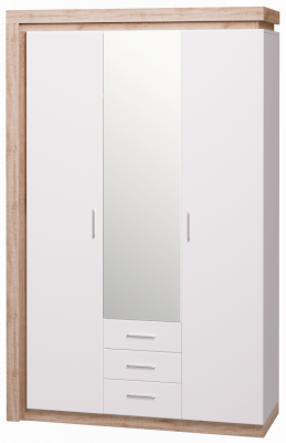 Шкаф для одежды с ящиками 3-х дверный с зеркалом №15 Дуб сакраменто/Белый снег глянец
