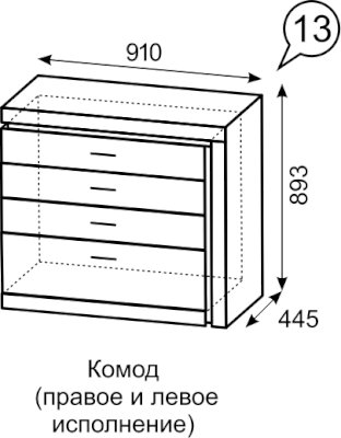 Комод №13 Дуб сакраменто/Белый снег глянец