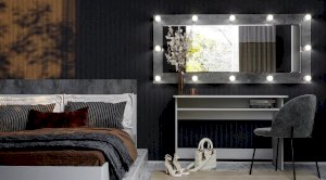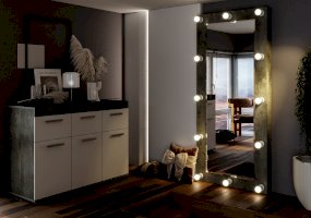 Большое зеркало Инстайл – это предмет интерьера, который помимо своей основной функции, позволит вам визуально расширить пространство и привнести больше света в помещение. Модель можно разместить в любой комнате, как вертикально, так и горизонтально. Рама зеркала изготовлена из ЛДСП в цвете бетон и дополнена по всему периметру лампочками с выключателем.