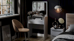 Туалетный стол «Эмма» в текстуре «Белый Ясень» идеально подойдет как для светлого помещения, так и для интерьеров в темных тонах, сделав комнату предметом особого внимания и притяжения.