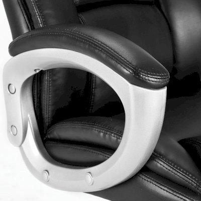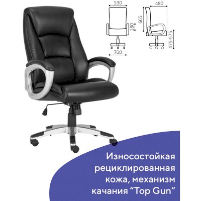 Обивка выполнена из высокотехнологичного, современного материала - рециклированной кожи. По эластичности и прочности рециклированная кожа максимально близка к натуральной. Этот материал устойчив к истиранию, что позволит сохранить внешний вид кресла на протяжении всего срока эксплуатации. Высокая спинка с широким мягким подголовником и боковой поддержкой гарантируют высокую степень комфорта на протяжении всего времени использования. В набивке кресла использован поролон высокой плотности - это обеспечивает оптимальную поддержку пользователя и препятствует "проминанию" сиденья в ходе эксплуатации.