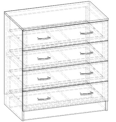 • Корпус, полки и фасады изготовлены из ЛДСП 16 мм с кромкой ПВХ 0,4 мм.