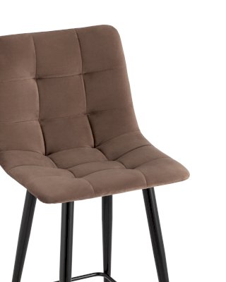 Лаконичный полубарный стул с обивкой из велюра без подлокотников. Плавная форма сиденья и спинки обеспечивают комфортную посадку. Красивая строчка на внутренней стороне велюровой обивки, эргономичная спинка, аккуратное исполнение и качественные материалы. Ножки выполнены из металла.