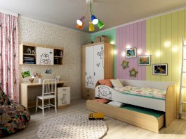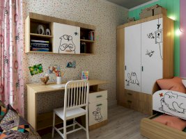 Детская «Кот» - удобная и безопасная мебель для вашего ребенка. Яркий принт на мебели создаст атмосферу в детской комнате. Каждый модуль комплектуется ручками двух цветов, что даст Вам прекрасную возможность, выбрать более подходящий цвет для вашего интерьера.