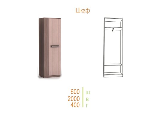 Отличительные особенности прихожей — функциональный дизайн и современные оттенки текстур. Конструкция данной модели включает в себя все необходимое: зеркало, шкаф, пенал, вешалки, ящики и множество полок для различных мелочей.