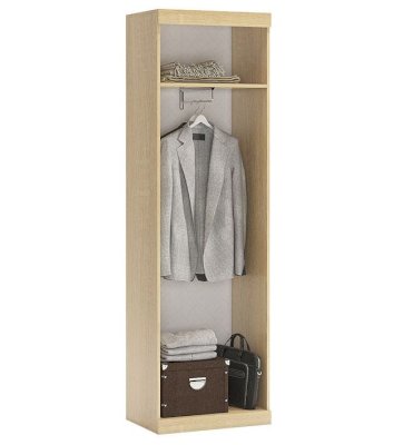 Шкаф 2-створчатый «Макси» — это небольшой по габаритам шкаф, выполнен в строгом европейском стиле, функционален и лаконичен. Выдвижная штанга для одежды и одна полка под вещи — все что нужно для маленькой уютной гостиной. Сборка корпуса шкафа позволяет менять двери местами (левое/правое открывание).