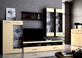 Простота может быть признаком роскоши. Гостиная «Фиеста» подтверждает этот факт. Входящие в комплект модели отличаются бесхитростными формами, отсутствием декоративных элементов и замысловатой фурнитуры. Несмотря на скромный дизайн, гарнитур производит впечатление элитной мебели. Глянцевые поверхности цвета крем-брюле смотрятся элегантно и респектабельно.