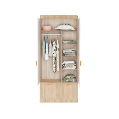 Наполнение: выдвижной ящик на шариковых направляющих глубиной 450 мм, петли с доводчиком, штанга для одежды, полки