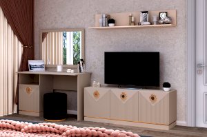 • ширина изделия составляет 1350 мм и позволит разместить телевизор с большой диагональю, а высота 520 мм является оптимальной для уровня глаз;